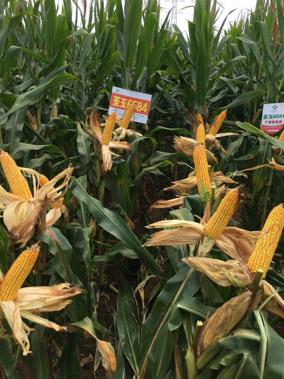 特征特性:該品種為中早熟玉米雜交種,夏播全生育期96天左右,株高254cm,穗位92cm左右,穗長20.5cm左右,穗粗5.2cm左右,穗軸紅色,穗行數16-18行,行粒數38粒左右,籽粒黃色、馬齒型,出籽率90%,千粒重345g左右。高抗紋枯病,中抗彎孢菌葉斑病,抗銹病、小斑病、莖腐病。